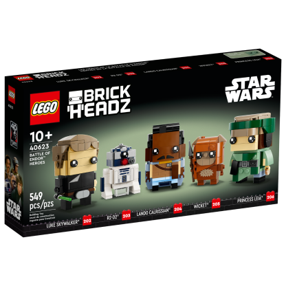 - Build 5 Battle of Endor Heroes (40623) – Buildable LEGO® BrickHeadz™ figures of Luke Skywalker, R2-D2, Lando Calrissian, Wicket and Princess Leia in Star Wars: Return of the Jedi outfits