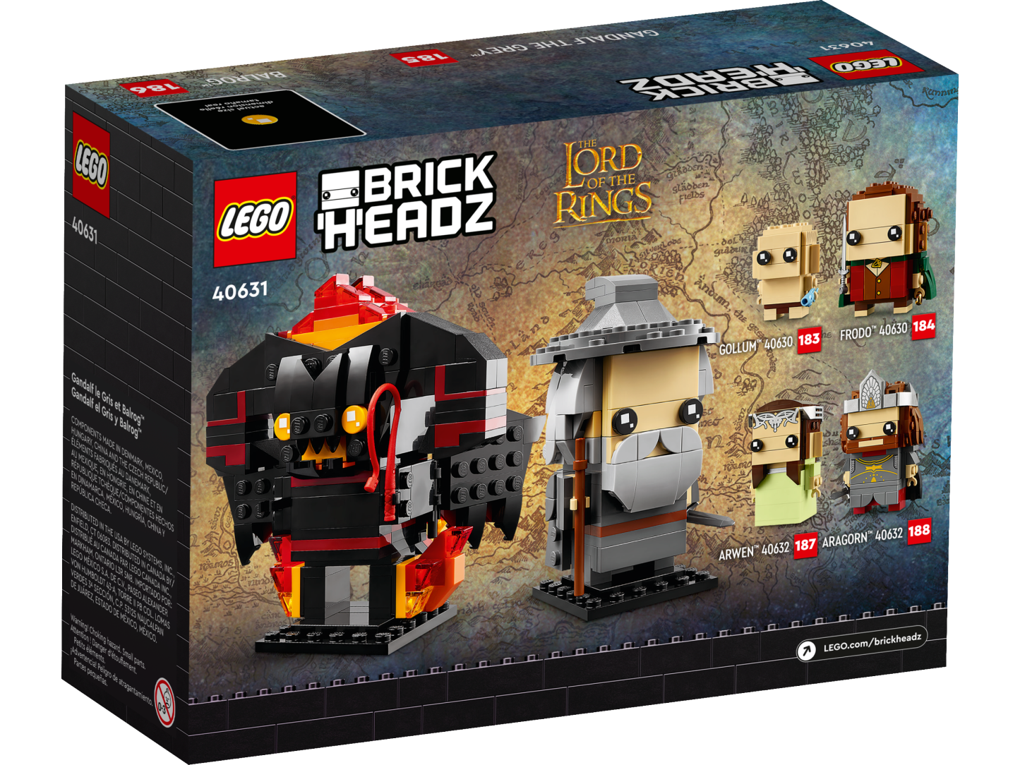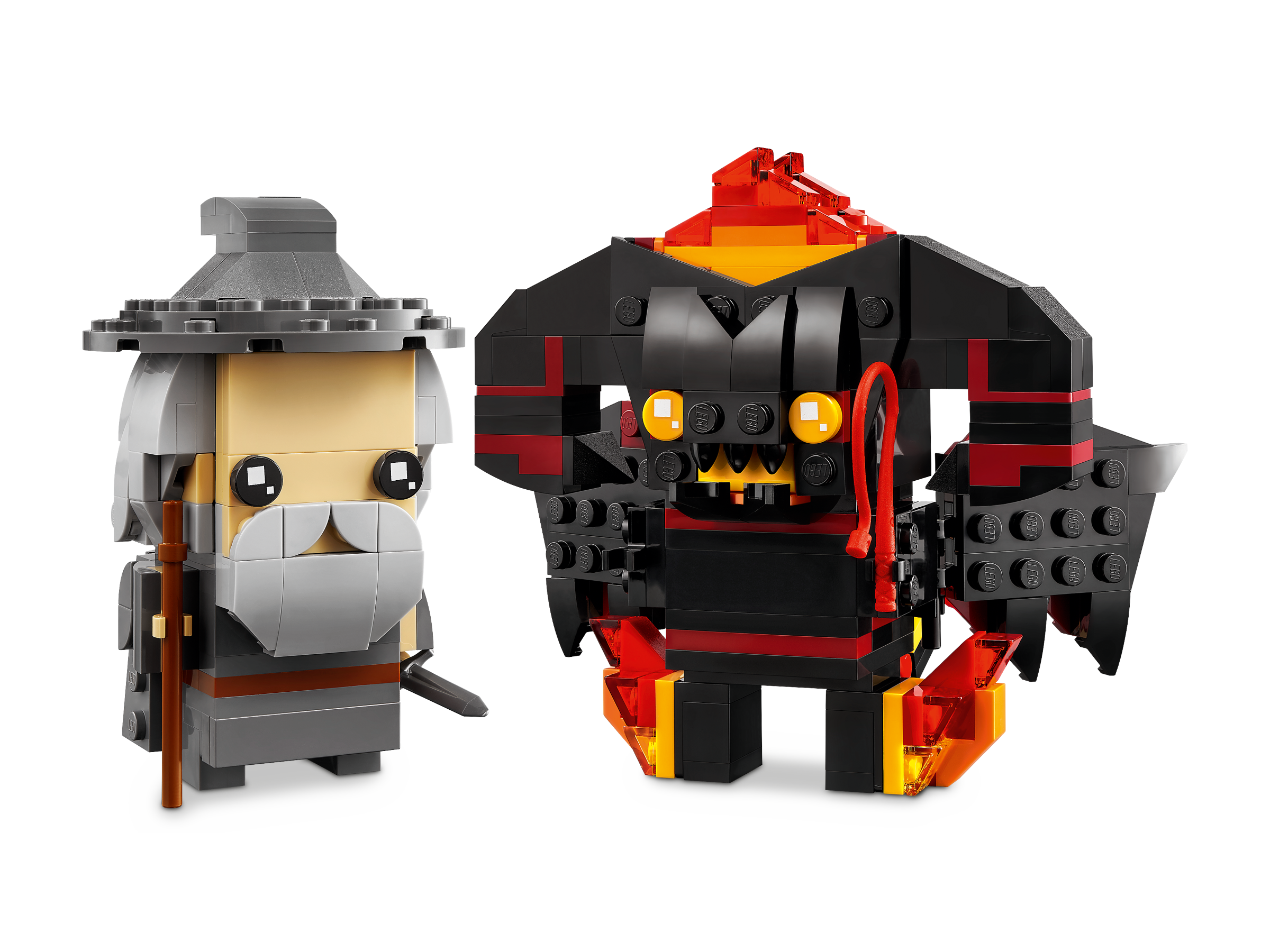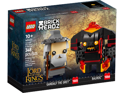 - LEGO® BrickHeadz™ Gandalf the Grey™ & Balrog™ building set (40631) – Features a LEGO BrickHeadz Gandalf figure with a sword and staff, and a Balrog figure with a whip