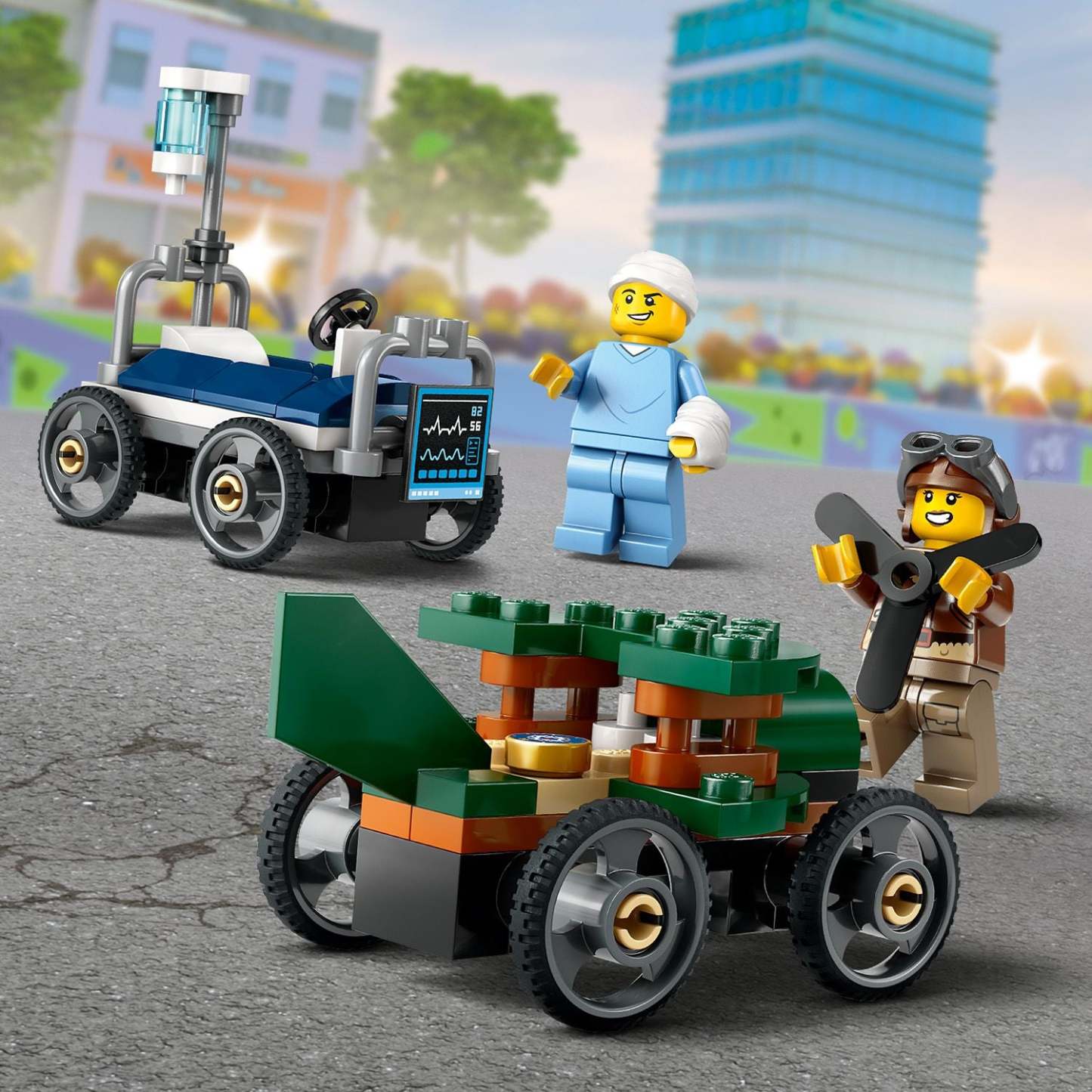 - Toy soapbox race car set – Suprise your young race fan with the LEGO® City Airplane vs. Hospital Bed Race Car Pack for kids aged 5 and up