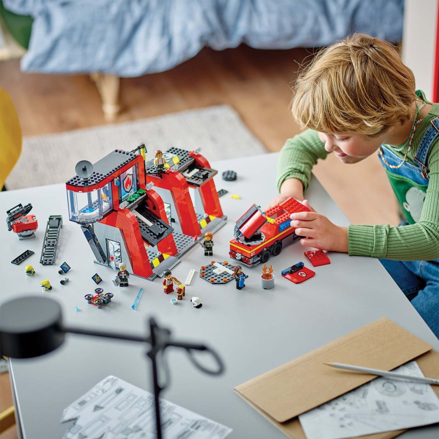 - Fire station set with a 3D construction guide – Discover the LEGO® Builder app where kids can zoom in and rotate models in 3D, track building progress and explore and save virtual playsets