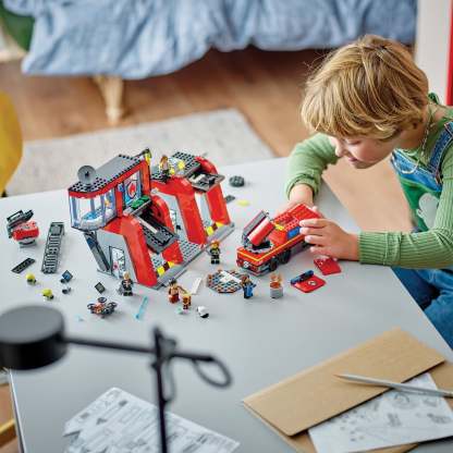 - Fire Station with Fire Truck for ages 6+ – LEGO® City playset, featuring a modern fire station with a control center and a toy emergency vehicle for action-packed firefighting adventures