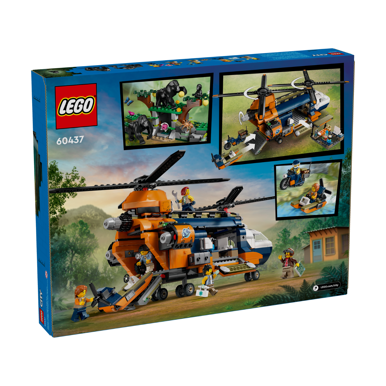 - What’s in the box? – This adventure toy playset includes a twin-rotor helicopter, motorcycle, swamp boat and jungle base, plus 5 adventurer minifigures and 3 gorilla toy figures