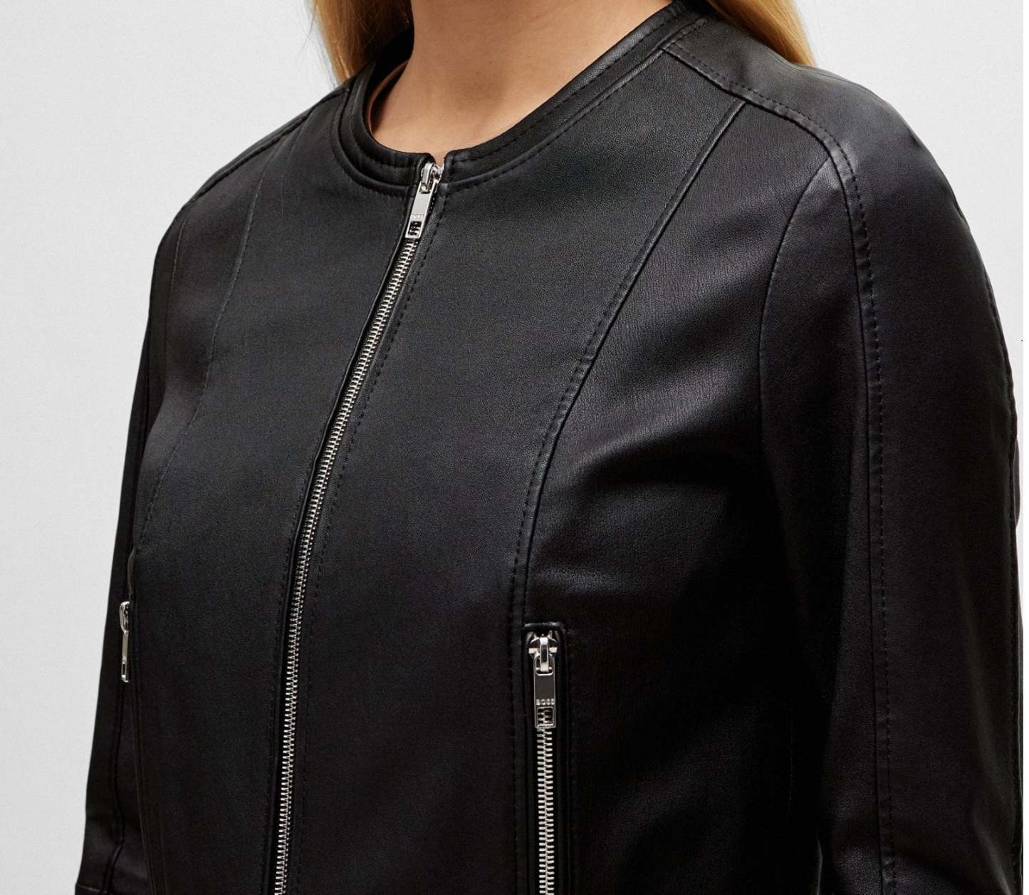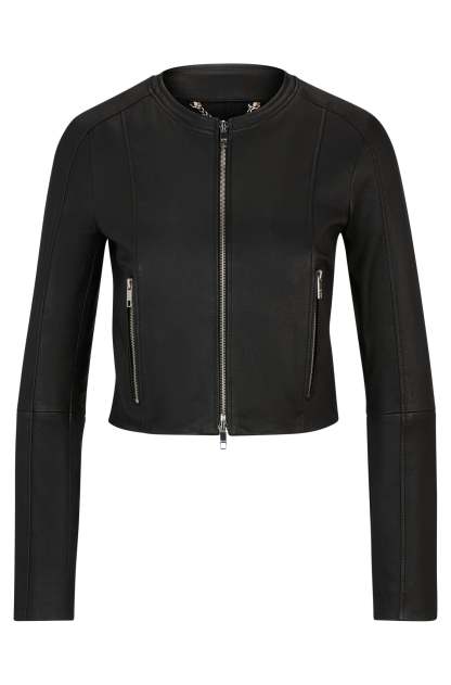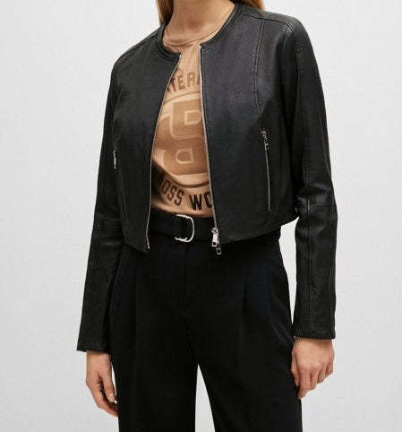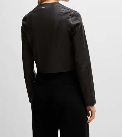 The jacket's slim silhouette is expertly tailored to flatter your figure while providing comfort and ease of movement. Available in classic black, it's a versatile staple that pairs effortlessly with your favorite outfits. The attention to detail is evident in every stitch, with features such as the subtle hand-finished seams and the smooth lining that glides over your clothing. When it comes to care, this piece is as low-maintenance as it is stylish; simply wipe it with a damp cloth and treat it with a leather conditioner to keep it looking pristine.